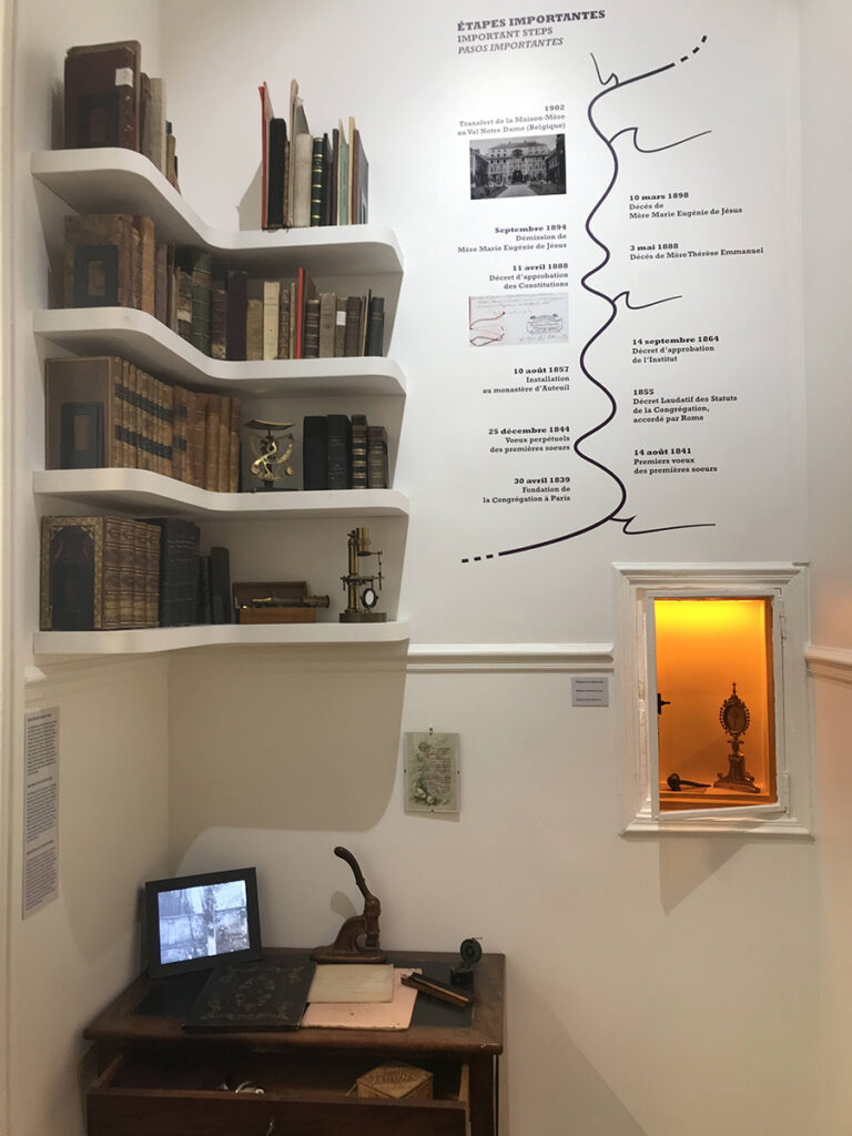 Le projet avait pour but de raconter une histoire, autant que de mettre en valeur les collections qui l’accompagnent. C’est l’histoire d’une vocation fondée à Paris en 1839 par Sainte Marie-Eugénie de Jésus, d’un ancrage à Auteuil, d’une spoliation et d’un exil, puis d’un retour aux sources et d’un couvent retrouvé. C’est aussi l’histoire d’une expansion mondiale, d’une grande œuvre éducative tournée vers les plus démunis, et d’une communauté aujourd’hui encore active dans de nombreux pays.