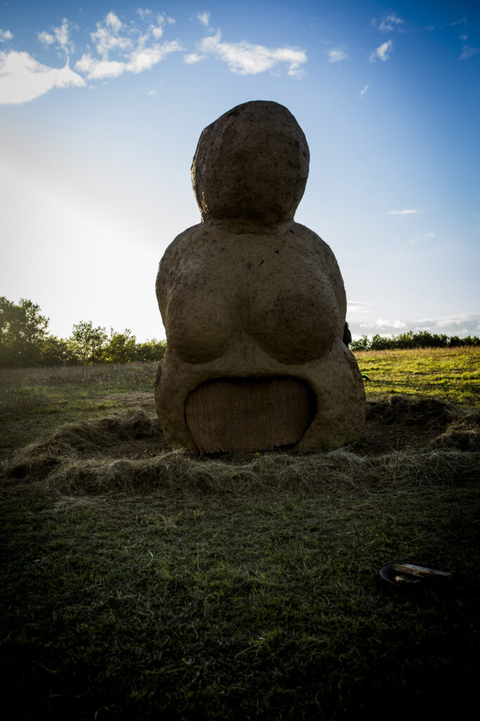 Présentée lors du Festival L’Homme Sauvage 2024, la Vénus est une sculpture monumentale de terre, pensée comme un symbole originel. Elle incarne la femme-matrice, puissance créatrice et régénératrice, et invite chacun à renouer avec la nature, la mystique ancienne et la possibilité d’une renaissance.